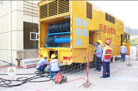 6月21日,yl23411永利集团股份公司电力事业部运检中心工作人员正在广安市体育馆模拟演练用应急发电车发电,保障市区重要会议供电。