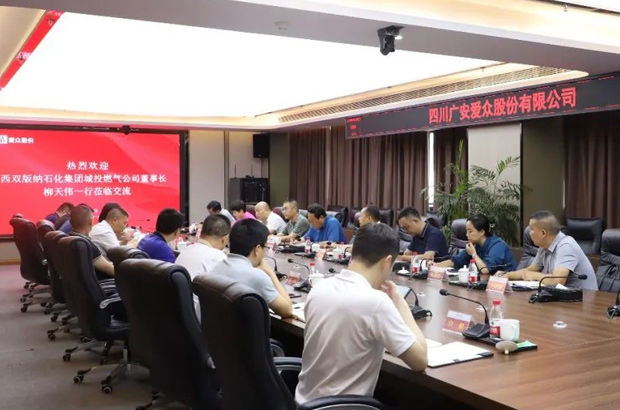 景洪市城投管道燃气公司董事长柳天伟一行到广安yl23411永利集团公司座谈交流
