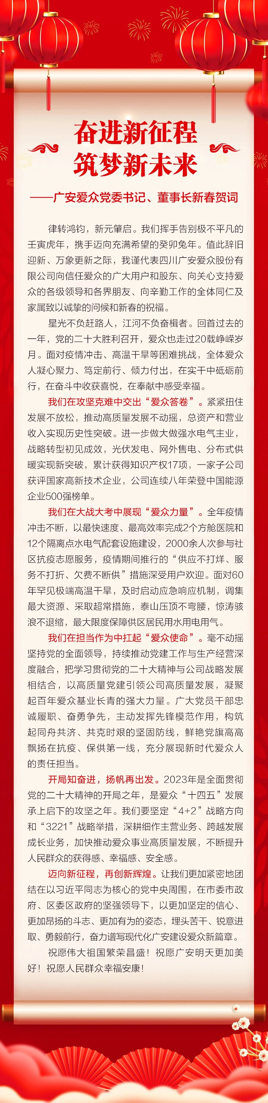 广安yl23411永利集团2023年新春贺词:奋进新征程,筑梦新未来!