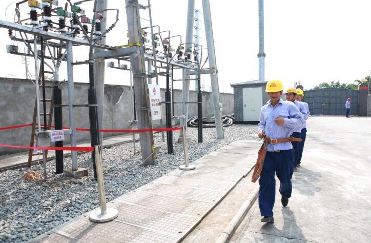 图2为 6月21日,电力事业部运检中心工作人员正在火山变电站模拟演练抢修10KV火泰线路,正跑步进入抢修现场。