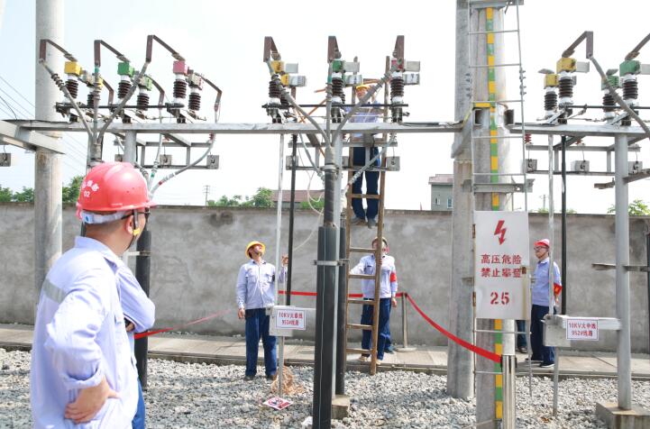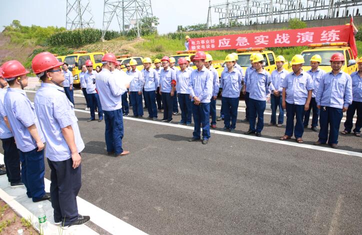 当日,针对广安区是特大洪灾区,汛期来临实际,为检验、评价和增强电力事业部运检中心汛期抗洪抢险应急处置能力,查找应急状态下的薄弱环节,提高防洪预案的指导性和科学性,电力事业部组织开展了城区输变电设备应急实战演练。演练共分为三个科目,一是根据水情预报,渠江水位即将达到18米,必须对10KV圆北线城北某小区户表进行拆除转移;二是火山变电站10KV火泰线路避雷器击穿,保护跳闸,需要应急抢险处理;三是10KV高特线出现停电事故,为保证10KV高特线上的用户市体育馆(正在搞大型政治活动、会议)的供电,出动发电车,保障市体育馆供电。