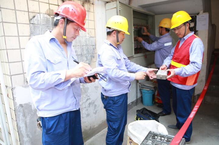 图5为6月21日,电力事业部运检中心工作人员正在城北某小区模拟演练将户表进行拆除后是否有电。