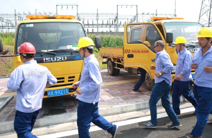 图8为6月21日,电力事业部运检中心正在开展输变电设备应急实战演练,抢修车正奔赴现场。